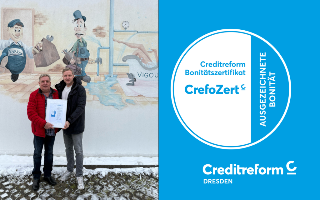 Die HSKG – Moderne Haustechnik GmbH aus Kamenz steht seit drei Jahrzehnten für Qualität, Zuverlässigkeit und nachhaltige Lösungen in der technischen Gebäudeausrüstung. Jetzt wurde das Familienunternehmen von der Creditreform Dresden mit dem renommierten CrefoZert ausgezeichnet – einem Gütesiegel, das bundesweit nur rund zwei Prozent aller Unternehmen erhalten. Es bestätigt eine außergewöhnlich gute Bonität, eine sehr stabile Finanzlage und ein besonders niedriges Ausfallrisiko.