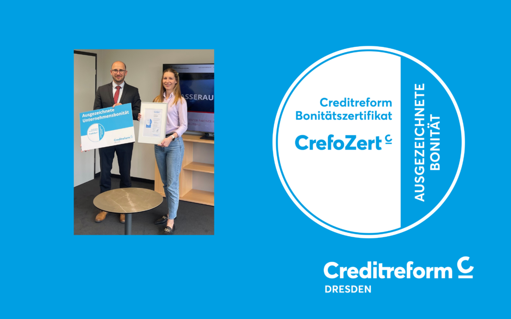 Creditreform Dresden gratuliert dem gesamten Team der ABG herzlich zum Erhalt des CrefoZerts – und zu einer bemerkenswerten Unternehmensentwicklung, die zeigt, was sächsischer Mittelstand leisten kann.