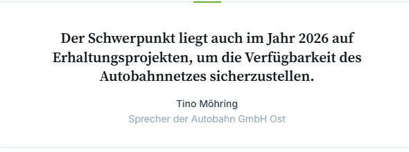 Das Bauprogramm für 2026 werde zwar erst in den kommenden Monaten endgültig festgezurrt, zentrale Leitlinien stünden jedoch bereits fest, so Möhring. „Der Schwerpunkt liegt auch im Jahr 2026 auf Erhaltungsprojekten, um die Verfügbarkeit des Autobahnnetzes sicherzustellen.“ Witterungsbedingt könne es allerdings noch zu Verschiebungen einzelner Projekte kommen.